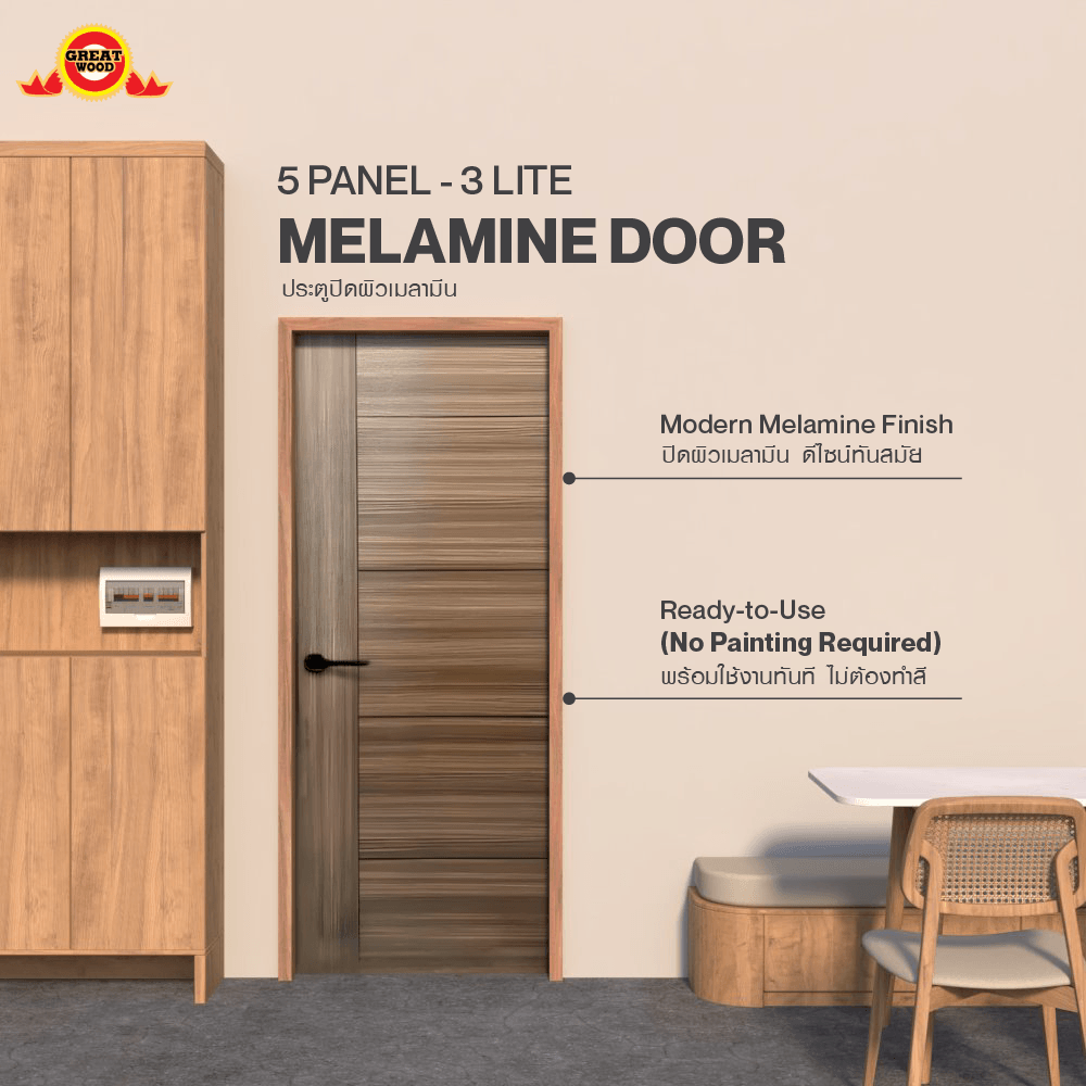 | รุ่น | HOLZTUR ประตูปิดผิวเมลามีน 5ฟัก |