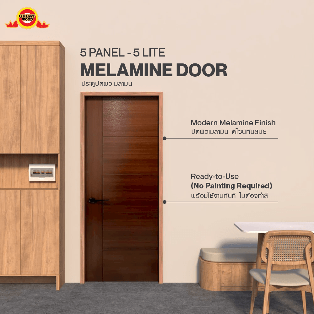 | รุ่น | HOLZTUR ประตูปิดผิวเมลามีน 5ฟัก |