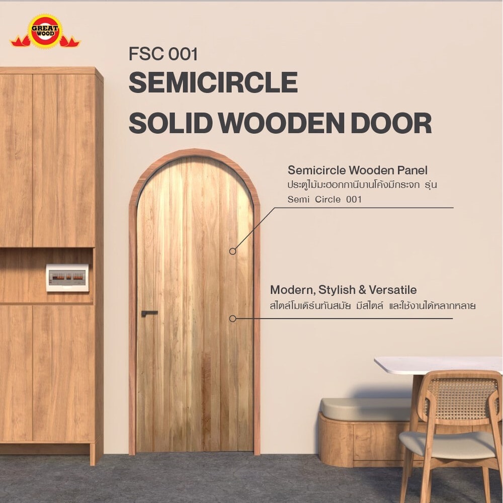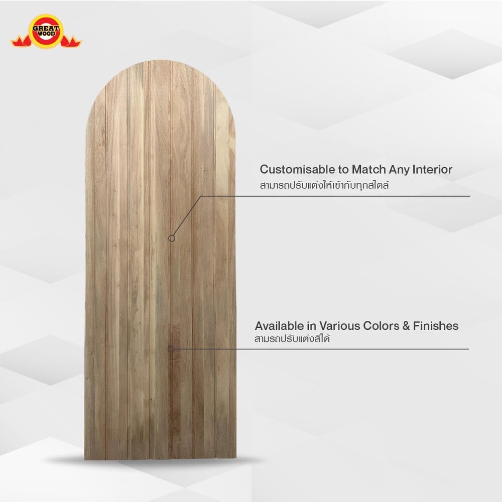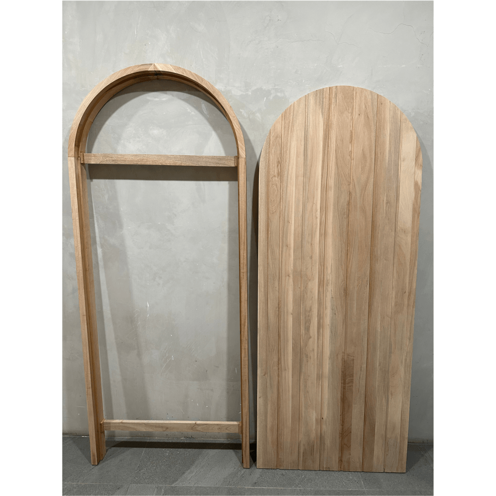 ชุดประตูไม้มะฮอกกานีบานโค้งทึบ รุ่นSemi Circle 001 80x210ซม. สีธรรมชาติ