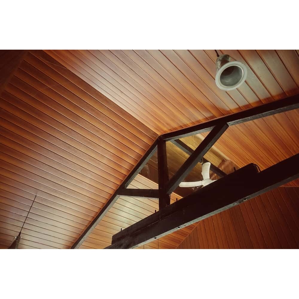2 ติดแผ่นไม้เทียมโดยใช้ด้านที่มีลิ่มสั่นขึ้นด้านบน แล้วแผ่นต่อไปจะใช้ด้านลิ่มยาวสอด