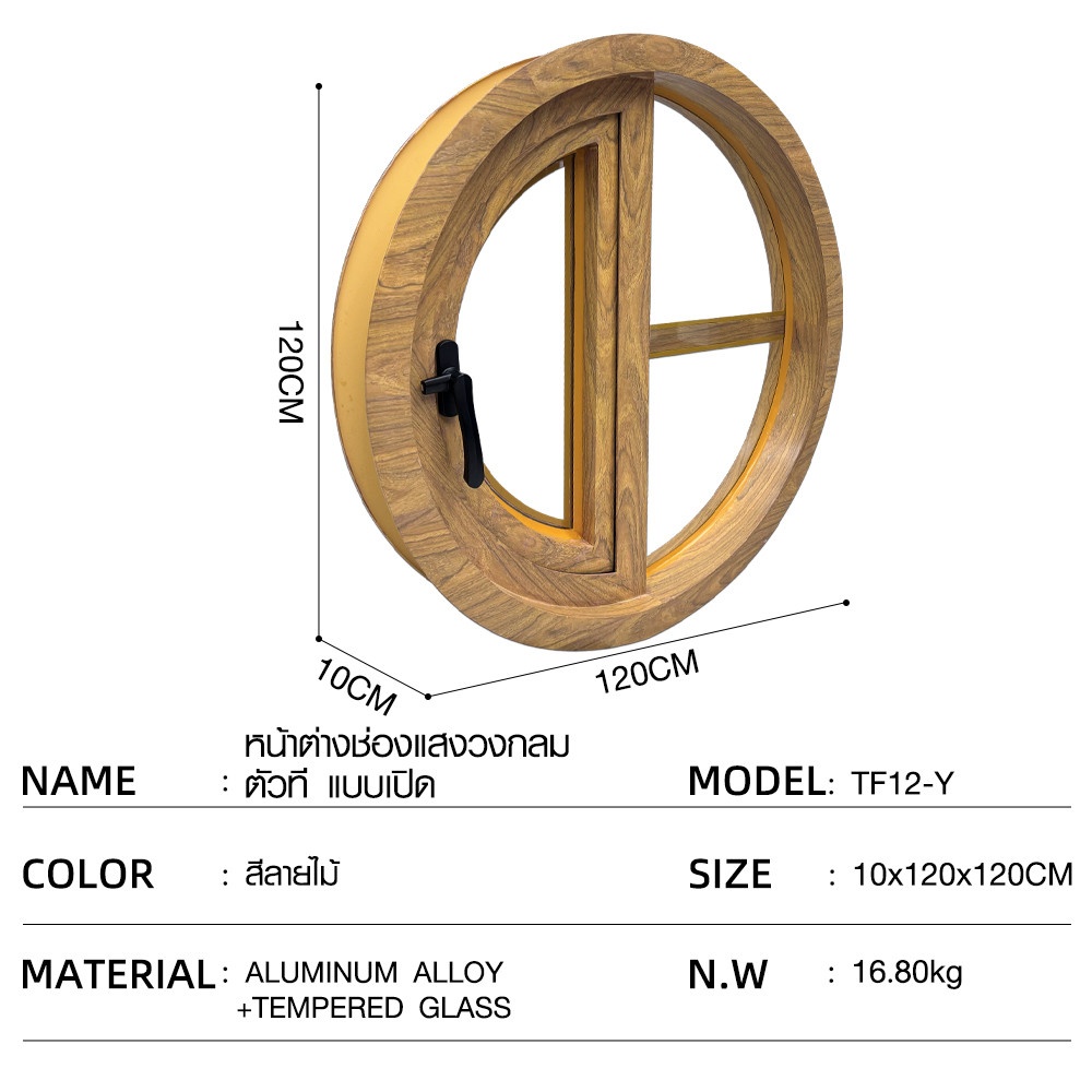 ช่องแสงวงกลมอลูมิเนียมสำเร็จรูปสีลายไม้ ขนาด 120CM