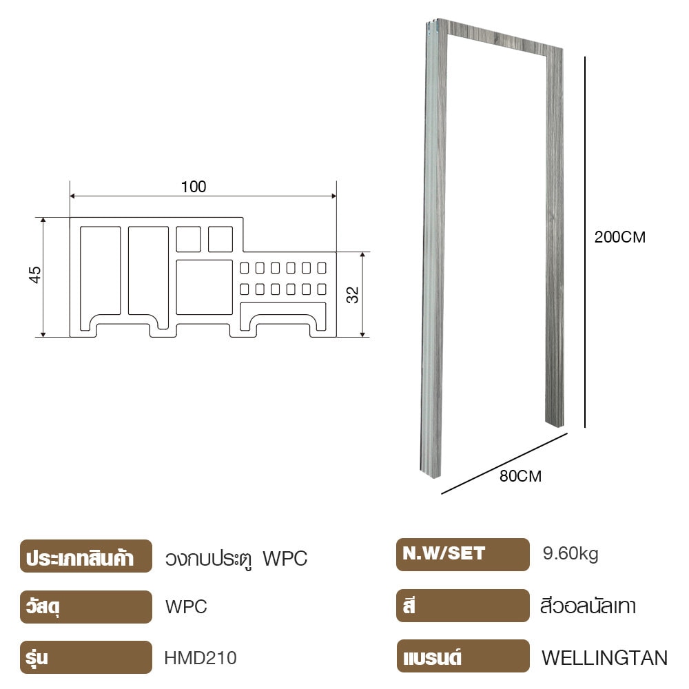 WELLINGTAN วงกบประตูWPC รุ่นHMD210 ขนาด 80x200ซม. สีวอลนัลเทา