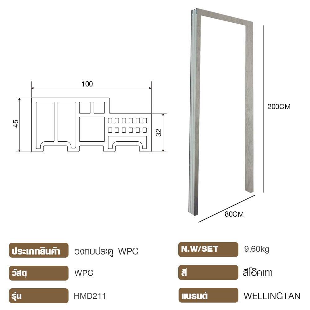 WELLINGTAN วงกบประตูWPC รุ่นHMD211 ขนาด 80x200ซม. สีโอ๊คเทา