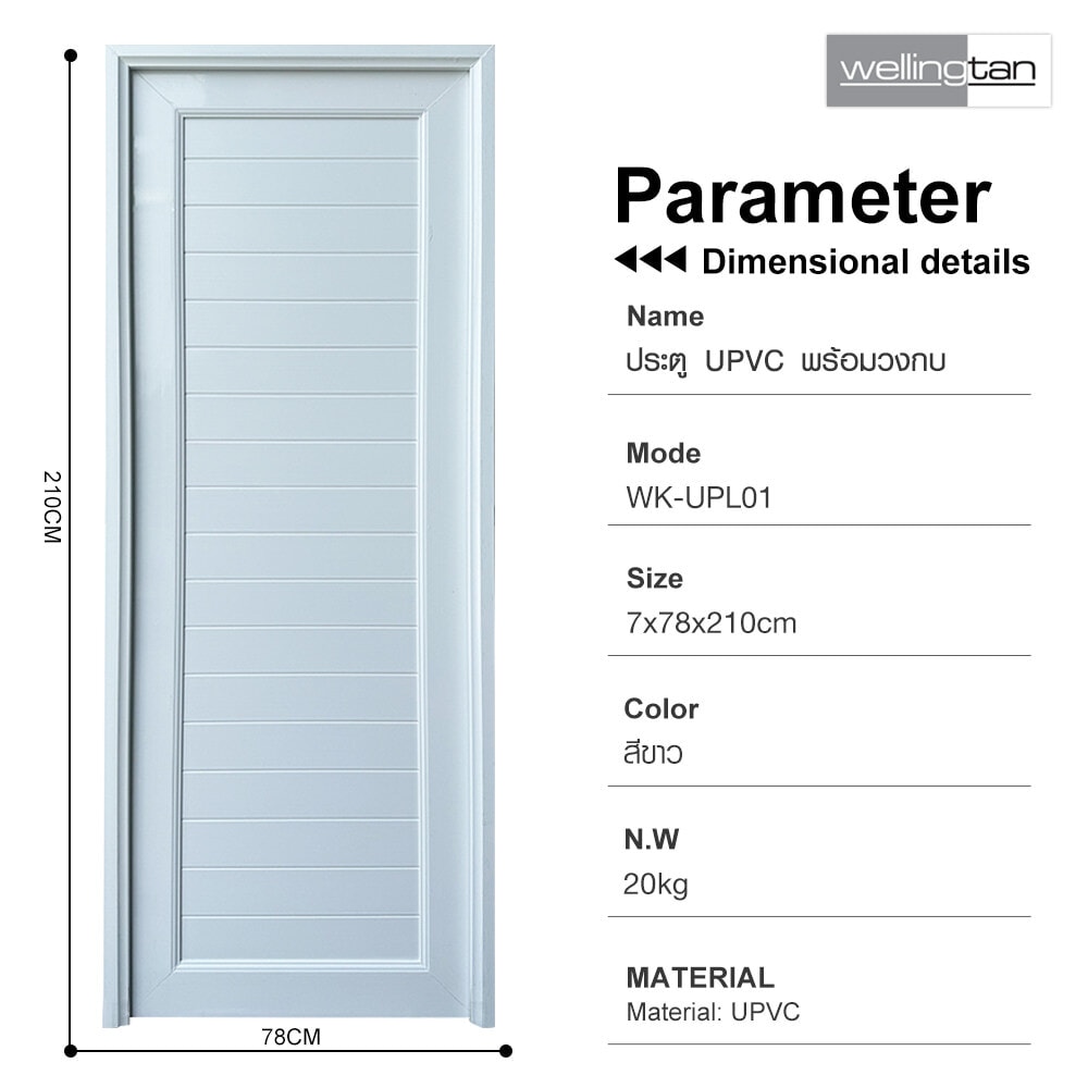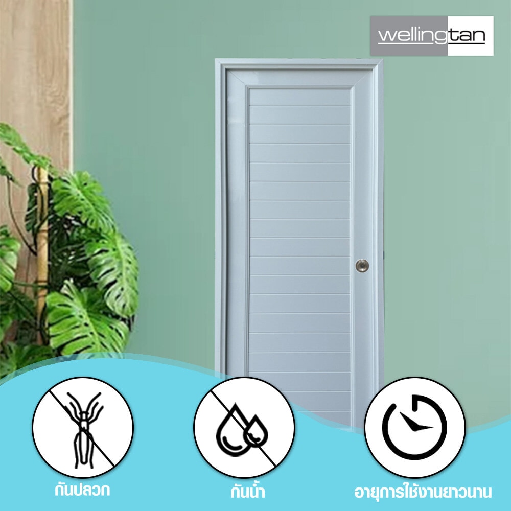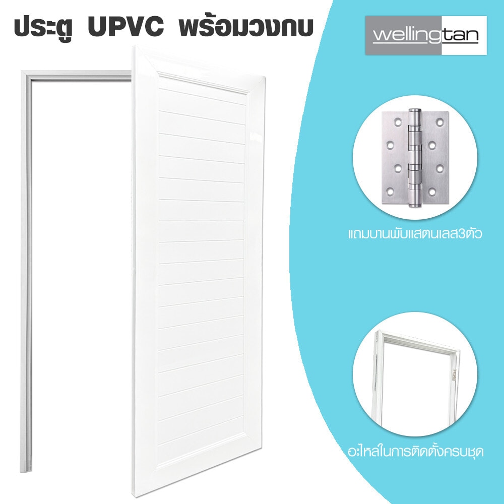ประตู UPVC (Unplasitcized Polyvinyl Chloride) พร้อมชุดวงกบจากแบรนด์Wellingtan มีคุณสมบัติทนต่อความชื้น ไม่บวมน้ำ โครงสร้างประตูแข็งแรงทนทาน เป็นวัสดุฉนวนกันความร้อน หมดปัญหาเรื่องปลวกและแมลงกัดกิน ออกแบบมาเพื่อทดแทนการใช้ประตูไม้จริง ผ่านเทคโนโลยีการผลิตที่อันทันสมัย เหมาะสำหรับใช้ติดตั้งเป็นประตูภายในบ้าน