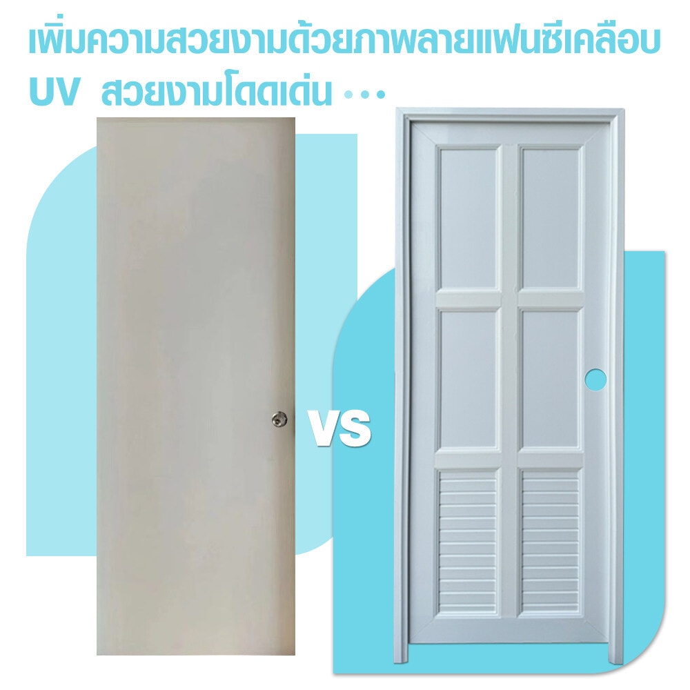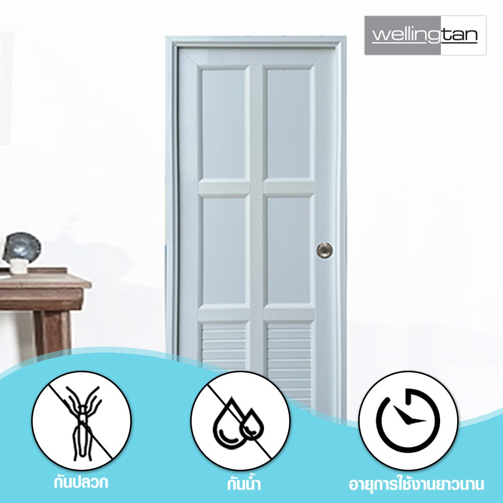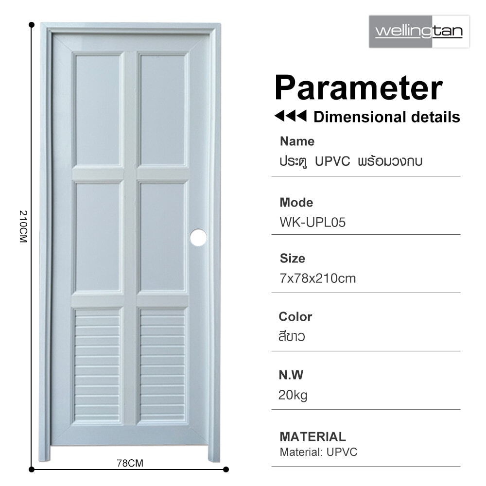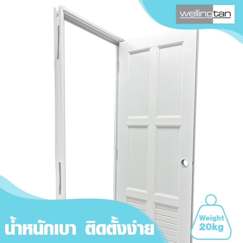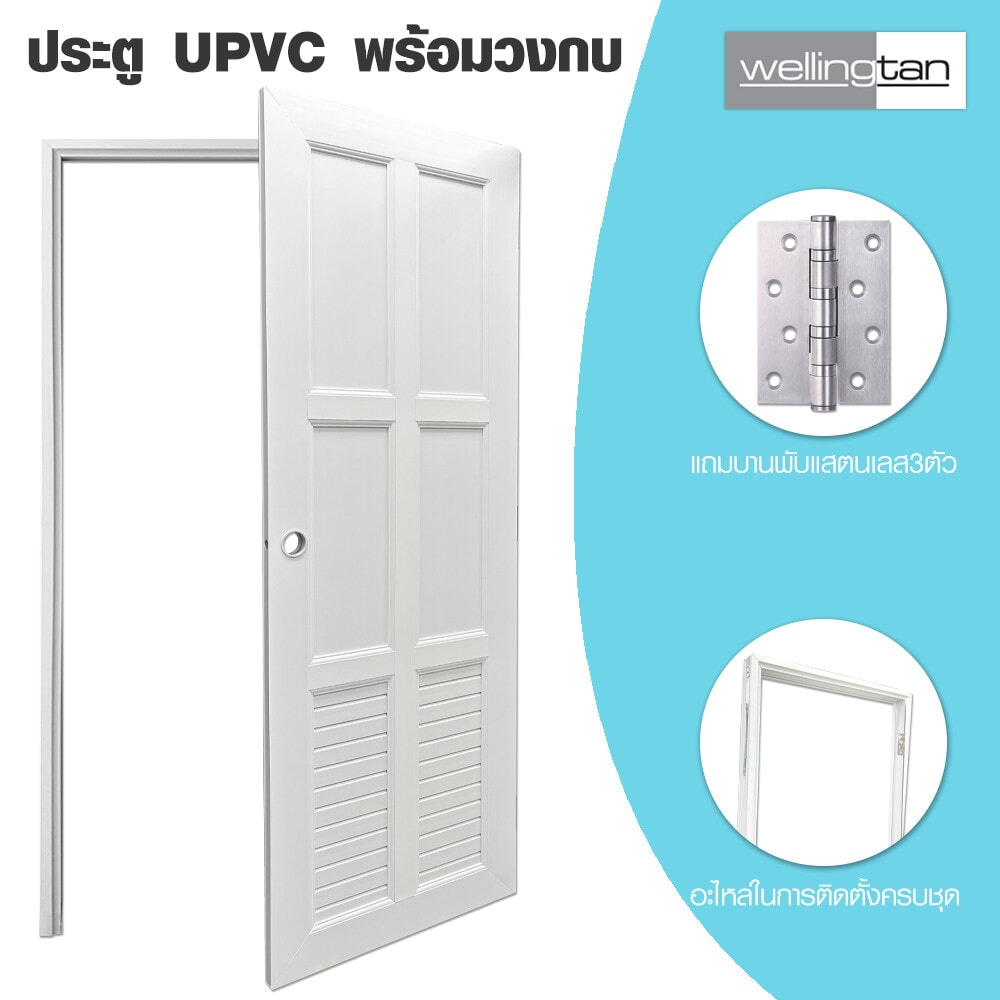 ประตู UPVC (Unplasitcized Polyvinyl Chloride) พร้อมชุดวงกบจากแบรนด์Wellingtan มีคุณสมบัติทนต่อความชื้น ไม่บวมน้ำ โครงสร้างประตูแข็งแรงทนทาน เป็นวัสดุฉนวนกันความร้อน หมดปัญหาเรื่องปลวกและแมลงกัดกิน ออกแบบมาเพื่อทดแทนการใช้ประตูไม้จริง ผ่านเทคโนโลยีการผลิตที่อันทันสมัย เหมาะสำหรับใช้ติดตั้งเป็นประตูภายในบ้าน