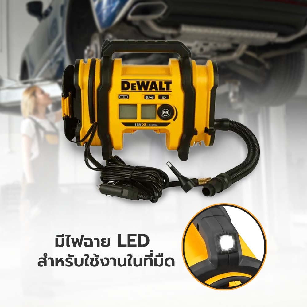 เครื่องสูบลมไร้สาย 18V (20V Max) รุ่น DCC018N-XJ สามารถใช้งานร่วมกับแบตเตอรี่ 18V หรือ 20V Max หรือ Flexvolt ได้ทุกรุ่น สามารถต่อกับไฟรถยนต์ 12V DC มีไฟฉาย LED สำหรับใช้งานในที่มืด สามารถเติมลมยางได้รวดเร็ว เติมลมสระน้ำ เป่าลมบอล และสูบลมออก หน้าจอ LED ขนาดใหญ่มองเห็นชัดเจน ตัวเครื่องขนาดกระทัดรัด น้ำหนักเบา