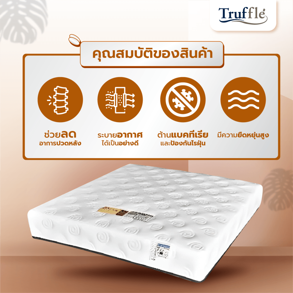 ที่นอนสปริงขนาด XL ไซส์เสริมยางพารา Nano latex ด้านบน ให้ความแน่นนุ่ม รองรับสรีระร่างกาย ระบายอากาศได้ดี เสริมการพักผ่อนได้ดีขึ้น