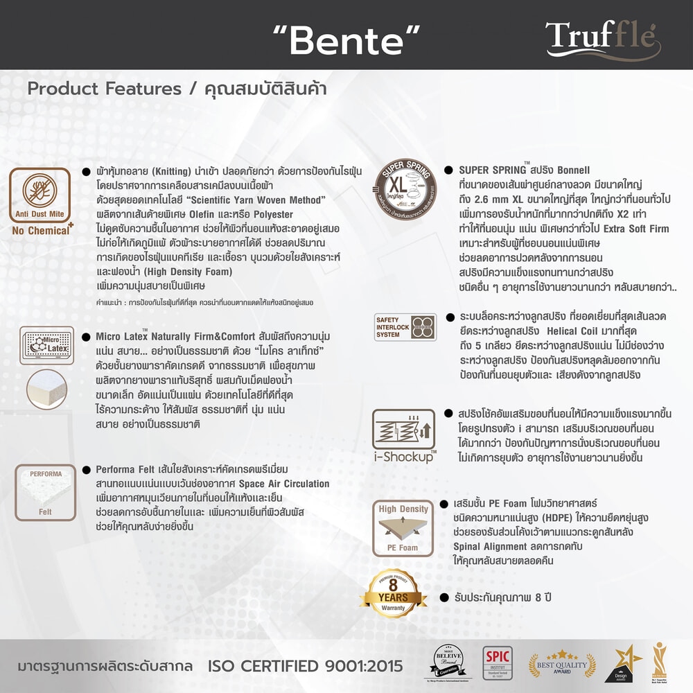 ที่นอนสปริงขนาด XL ไซส์เสริมยางพารา Nano latex ด้านบน ให้ความแน่นนุ่ม รองรับสรีระร่างกาย ระบายอากาศได้ดี เสริมการพักผ่อนได้ดีขึ้น