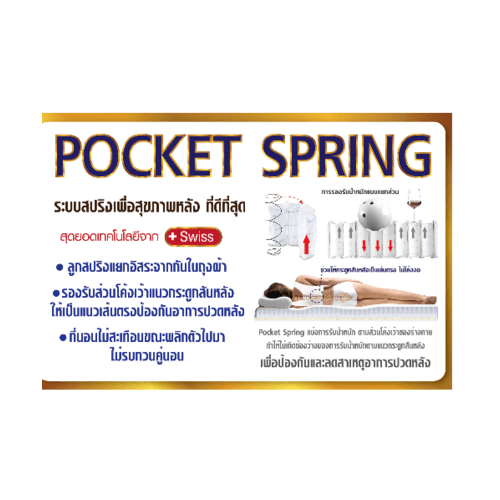 ที่นอน ระบบ Pocket spring แบบโซน หุ้มด้วยผ้าทอลาย ให้ความนุ่นสบาย ยามพักผ่อน ผ้าหุ้มกันไรฝุ่น