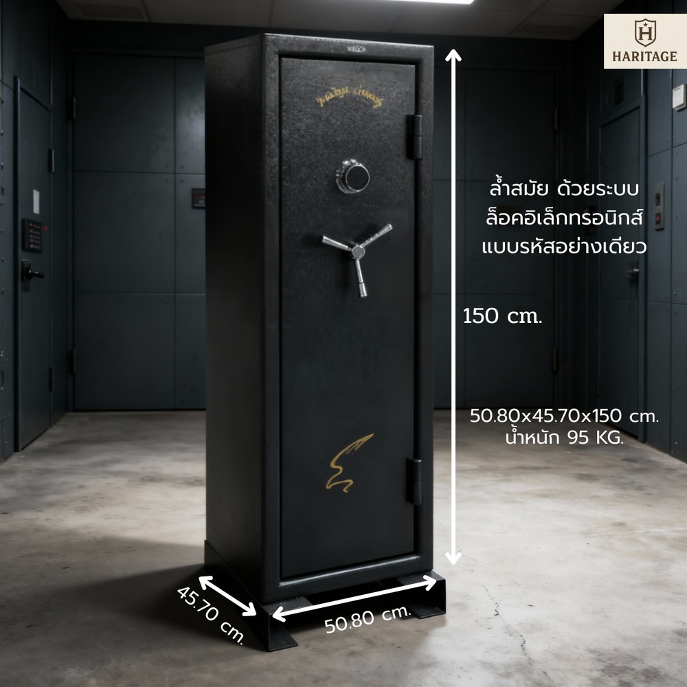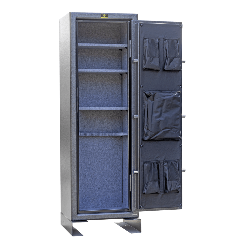 ตู้เซฟเก็บปืน รุ่น FS14M เก็บปืนได้ 14 กระบอก ทั้งปืนยาวและปืนสั้น ล็อคด้วยระบบอิเล็คทรอนิกส์ ระบบรหัสล็อคอย่างเดียว พิเศษ มีซองใส่อุปกรณ์ตรงบานตู้ด้านใน ทันสมัย สะดวก ปลอดภัย