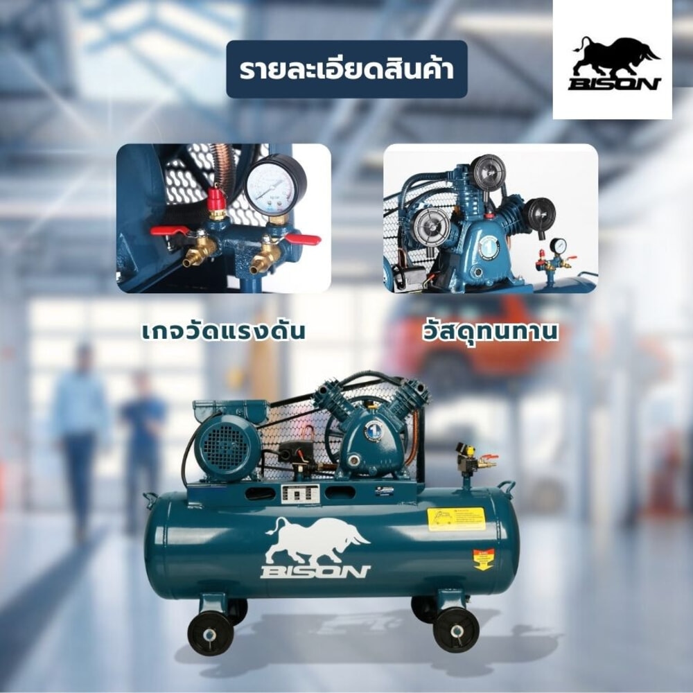 BISON ปั๊มลมสายพาน 1.0 HP ขนาด 36ลิตร รุ่น LAZ-0.036/10-36L