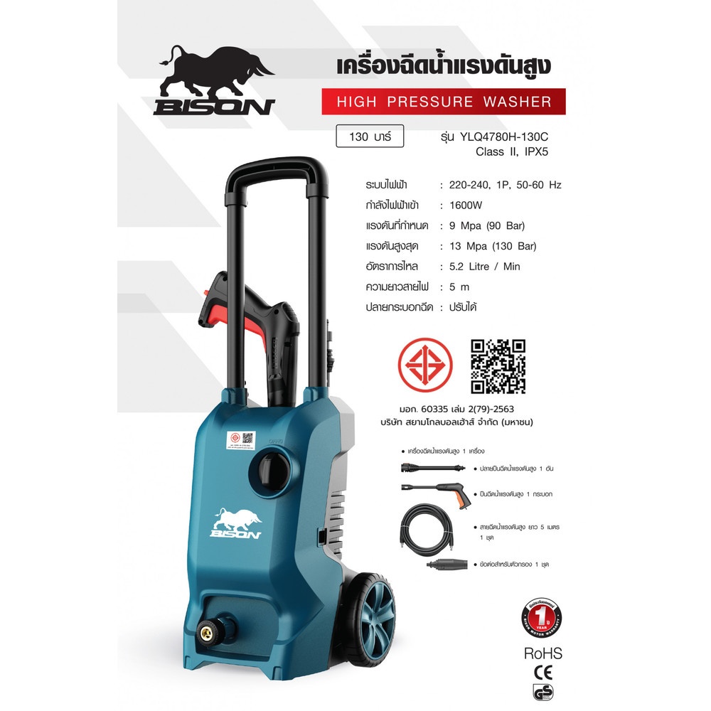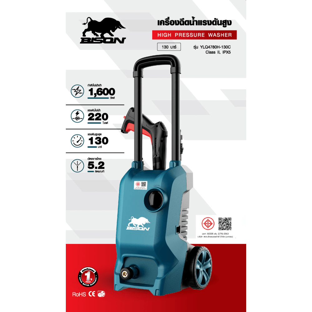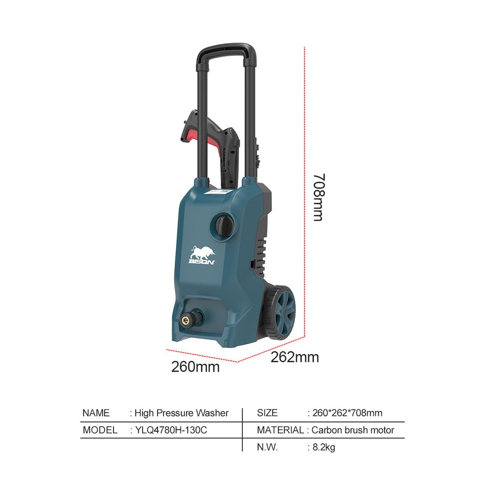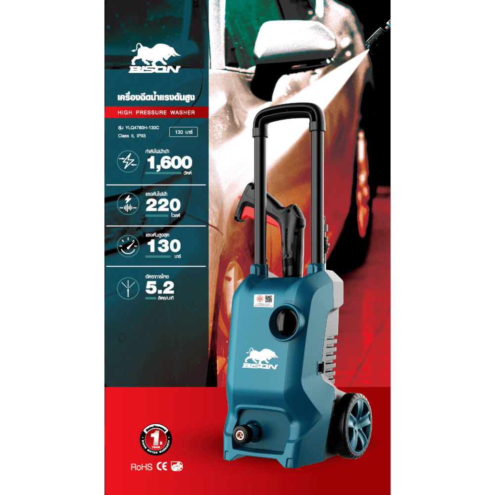 BISON เครื่องฉีดน้ำแรงดันสูง 130 บาร์ 1600W รุ่น YLQ4780H-130C สีเขียว