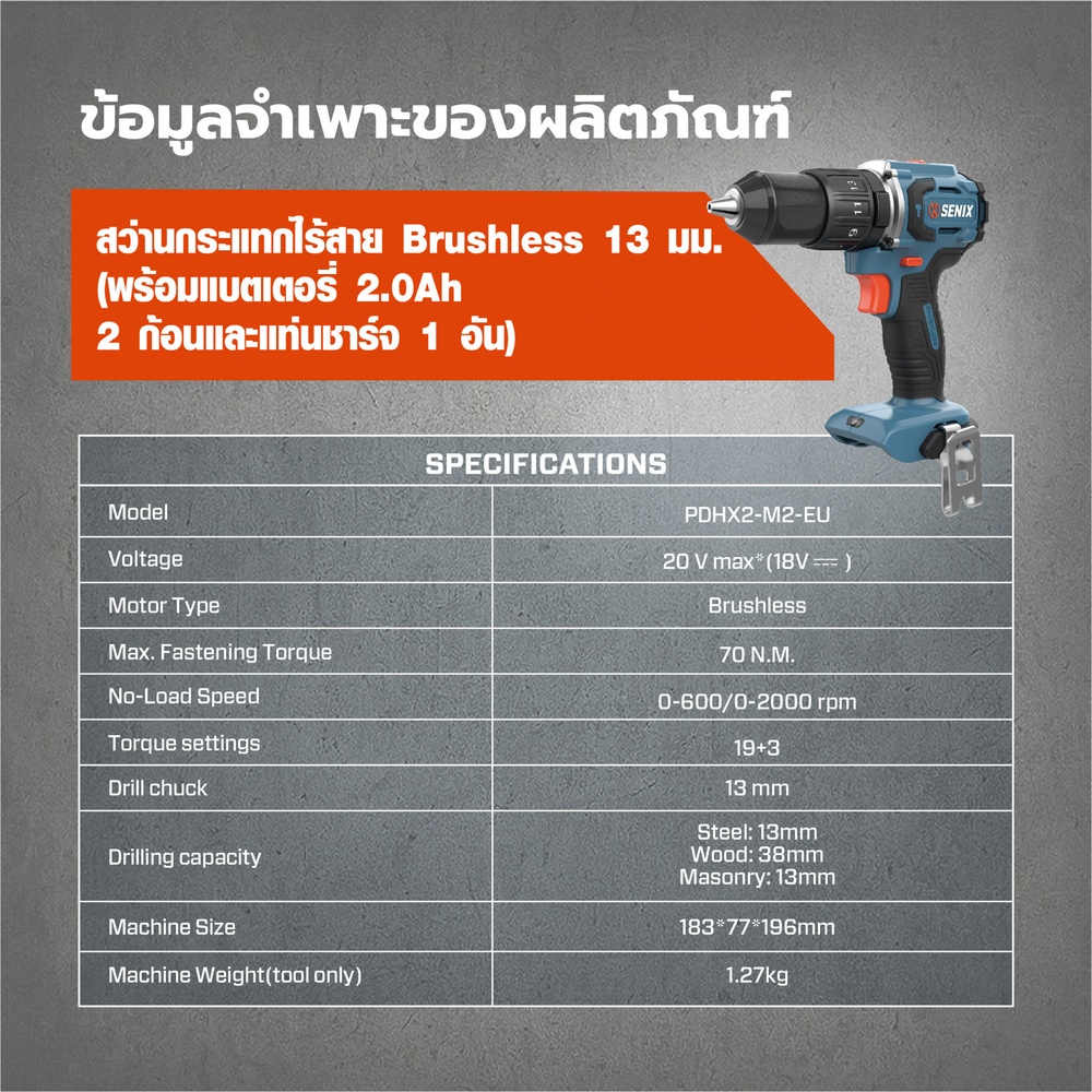 ขนาดจับหัวจับดอกสว่าน : 13 มม.