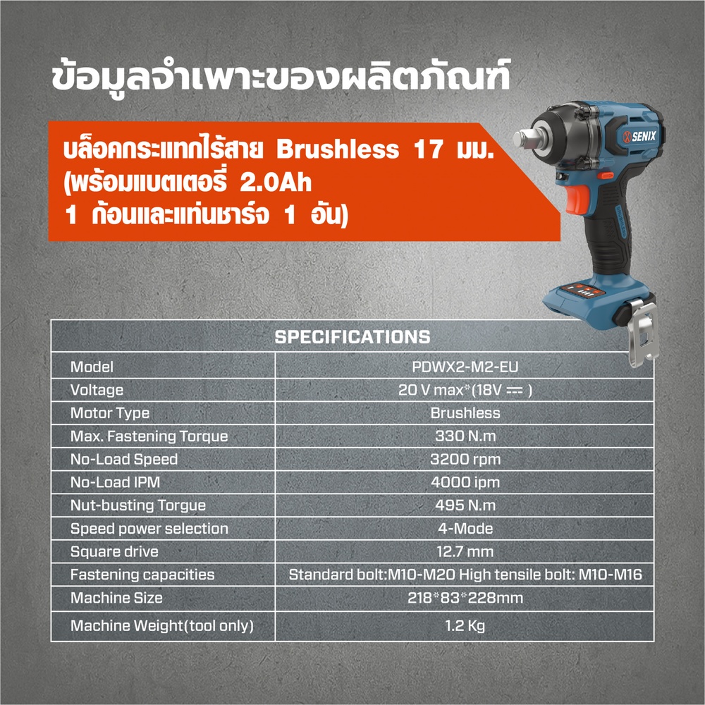 ขนาดหัวต่อสี่เหลี่ยม : 12.7 mm