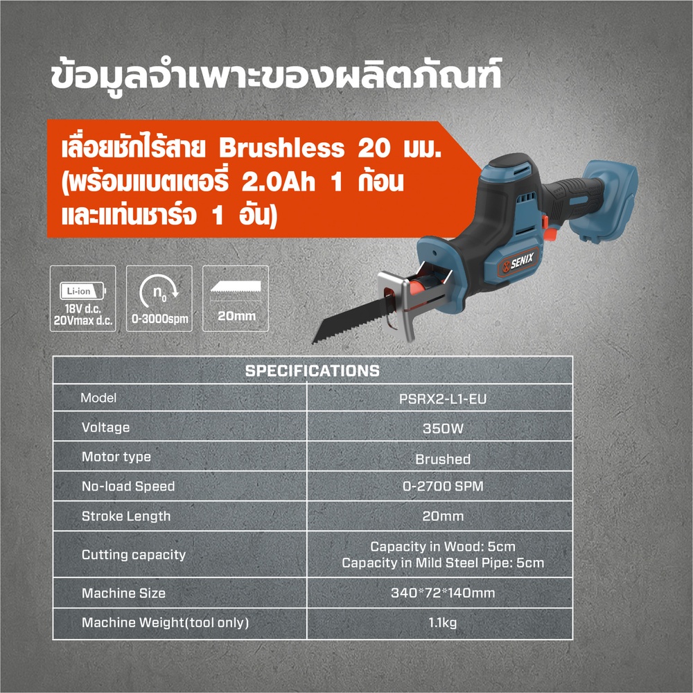 จำนวนการเคลื่อนที่ของใบเลื่อย : 2,700 รอบ/นาที (Max)