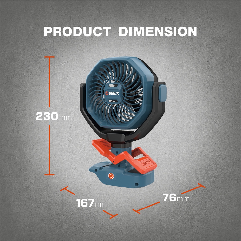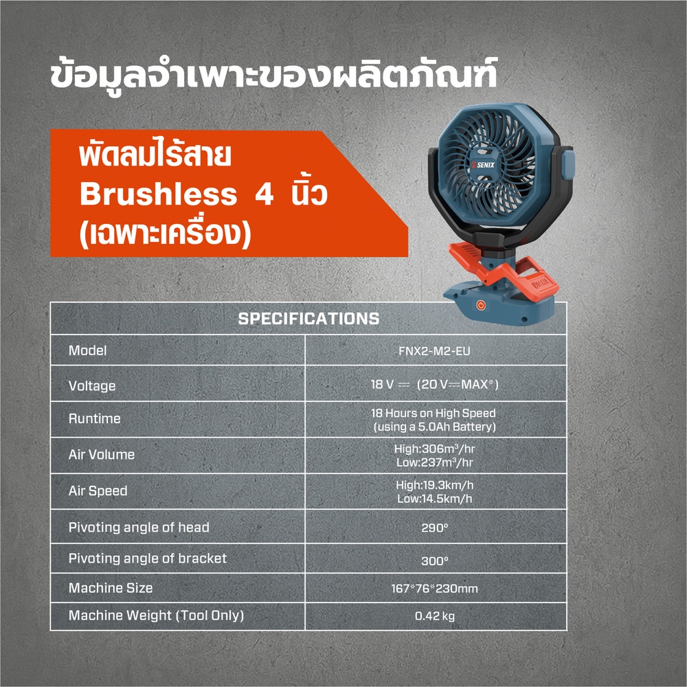มุมการหมุนของหัวพัดลม : 300°