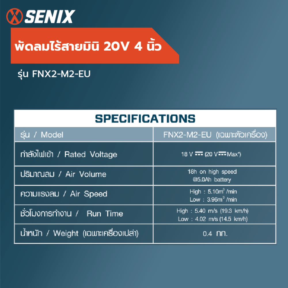 ใช้งานคู่กับแบตเตอรี่ของ Senix (20V)