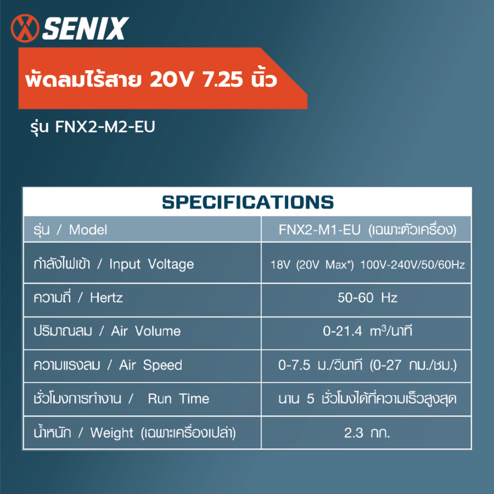 ใช้งานคู่กับแบตเตอรี่ของ Senix (20V)
