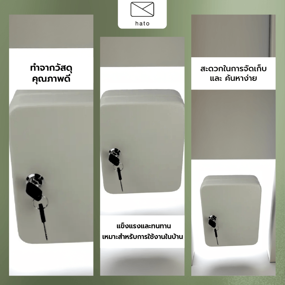 ภายในตู้มีที่แขวนกุญแจที่แยกเป็นสัดส่วน ทำให้ง่ายต่อการจัดเก็บและค้นหากุญแจ ไม่ว่าจะเป็นกุญแจประตูหลัก กุญแจห้อง หรือกุญแจลิ้นชัก ก็สามารถเก็บแยกได้อย่างเป็นระเบียบ