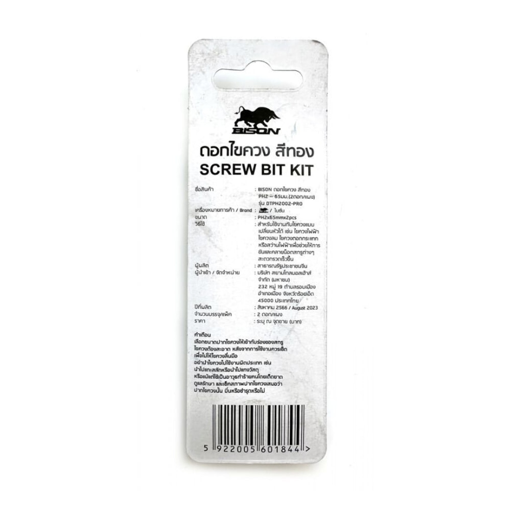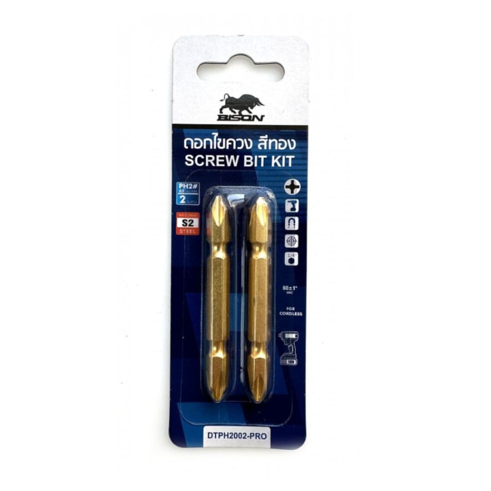 BISON ดอกไขควง สีทอง PH2 – 65มม.(2ดอก/แผง) รุ่น DTPH2002-PRO