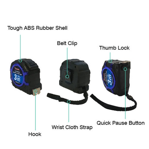 วัสดุผลิตอย่างดี ทั้งตัวบอดี้ และตัวสายวัดทั้งหมด ผสมกันลื่นกันกระแทก สเกลเลขใหญ่ มีขนาดหุน นิ้ว เซนติเมตร และขนาดมิลส่วนปลายสายวัดระยะ เป็นแกนแม่เหล็กคู่ ยึดติดเหล็กได้ดี ใช้งานทนทาน ตลับเมตรอย่างดี เมตรยาว 3 เมตร มีตัวปรับล็อคความยาว แบบมือกด เปิด-ปิด ได้สายวัดระยะแข็งแรง ยืดไกลได้ 3.20m. โดยไม่หักงอแกนมอเตอร์พิเศษ ไม่ทำให้เกิดการติดขัดลบขอบมุม ลบคมทุกจุด ไม่ทำให้บาดมือ