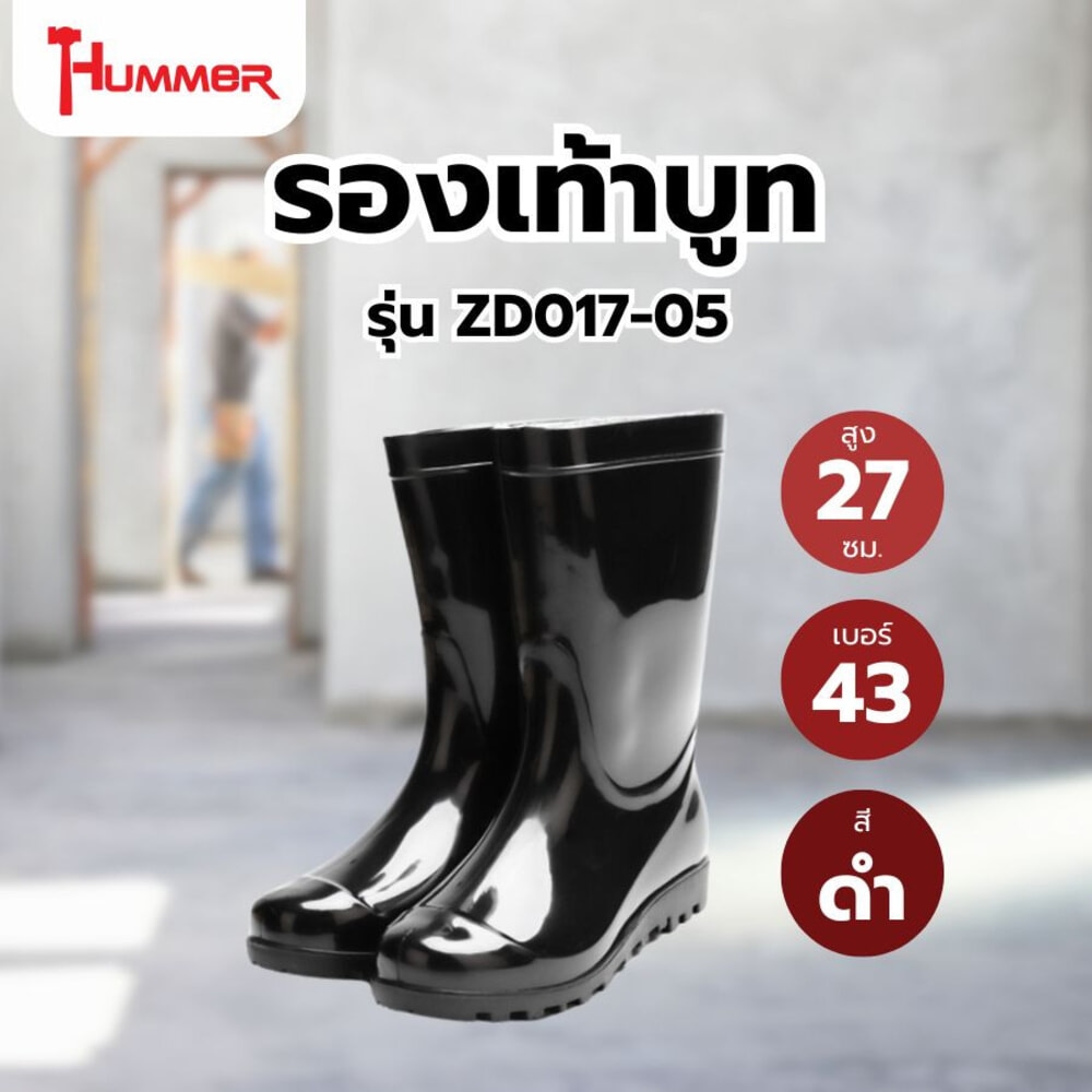 HUMMER รองเท้าบูทสีดำสูง 27CM เบอร์ 43 รุ่น ZD017-05 มาพร้อมกับความทนทานและการปกป้องเท้าของคุณจากน้ำและสิ่งสกปรกอย่างมีประสิทธิภาพ