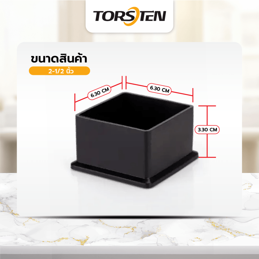 TORSTEN ยางรองขาโต๊ะสี่เหลี่ยม (สวมนอก) รุ่น 1XY-007-2/12 ขนาด 2-1/2” แพ็ค 2 ชิ้น สีดำ