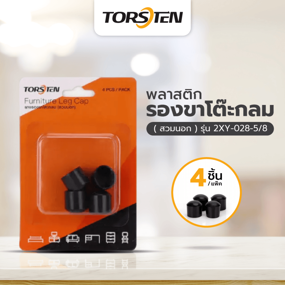 TORSTEN ยางรองขาโต๊ะกลม (สวมนอก) รุ่น 2XY-028-5/8 ขนาด 5 / 8” แพ็ค 4 ชิ้น สีดำ