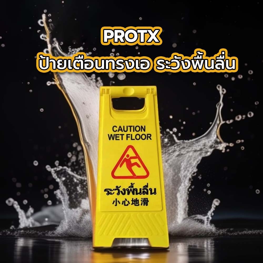 PROTX ป้ายเตือนทรงเอ ระวังพื้นลื่น รุ่นLBFS61 สีเหลือง