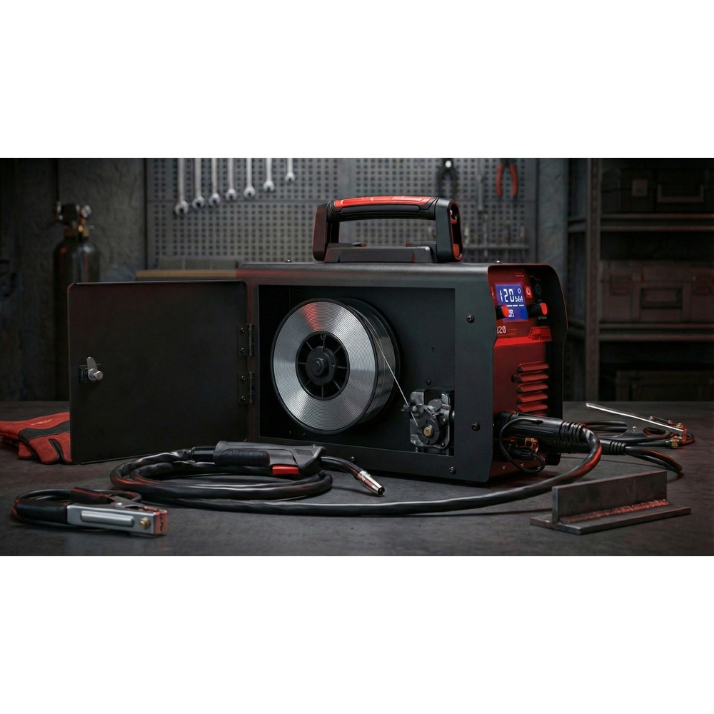 จุดเด่นที่สุดคือ การป้อนลวดเชื่อมแบบอัตโนมัติ จากม้วนลวดที่อยู่ในเครื่อง ทำให้เราไม่ต้องหยุดเปลี่ยนลวดบ่อยๆ ช่วยให้ลากแนวเชื่อมยาวๆ ได้ต่อเนื่องและประหยัดเวลามากครับ
