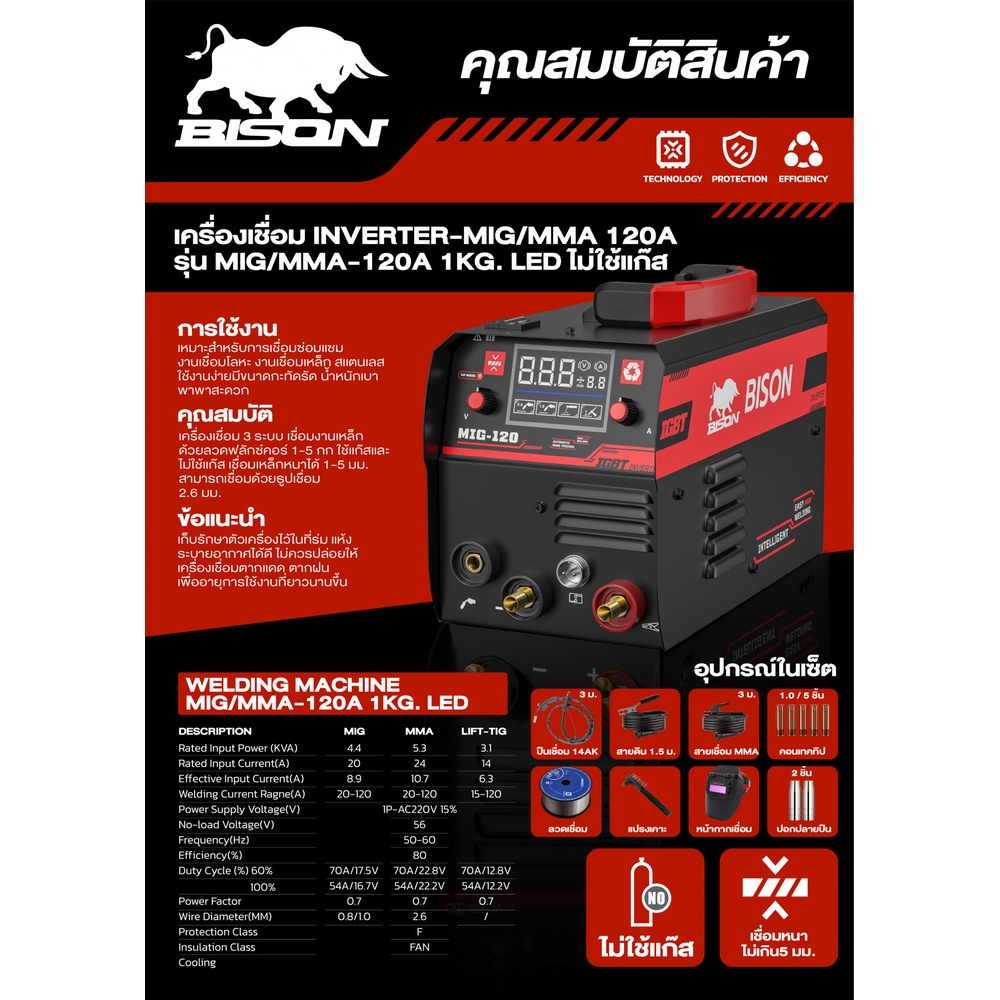 ในการใช้งานเครื่องเชื่อม MIG โดยเฉพาะรุ่นที่มีคุณสมบัติเฉพาะตัวอย่าง BISON MIG/MMA-120A