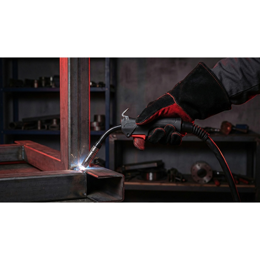 นี่คือจุดขายที่แข็งแกร่ง เพราะ MIG ใช้เพียงมือเดียว กดไกปืนแล้วลากแนวเชื่อมได้เลย ระบบป้อนลวดอัตโนมัติช่วยรักษาระยะห่างให้คงที่ ลดโอกาสที่ลวดจะติดชิ้นงานแบบการเชื่อมธูป
