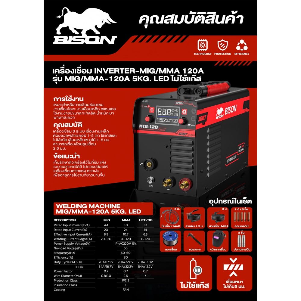 - ขนาดลวดเชื่อม: ต้องเลือกใช้ขนาดลวดให้ตรงกับสเปกเครื่อง ซึ่งรองรับขนาด 0.8 มม. และ 1.0 มม. สำหรับ MIG และไม่เกิน 2.6 มม. สำหรับงานเชื่อมธูป (MMA)