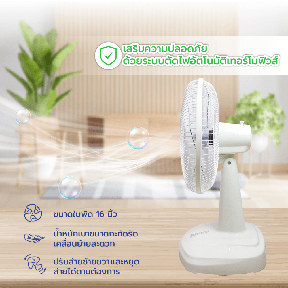 3.ไม่ควรแหย่นิ้ว หรือวัตถุใดๆ เข้าในช่องตะแกรง ไม่ควรวางบนที่นุ่มเช่น เตียง โซฟา ควรวางพัดลมบนพื้นที่เรียบเท่านั้น