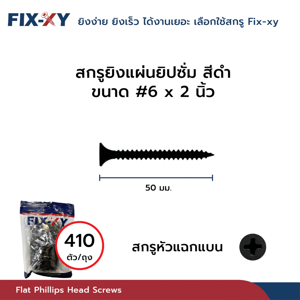 | รุ่น | ขนาด #6x2นิ้ว บรรจุ 410ตัว/กล่อง สีดำ |