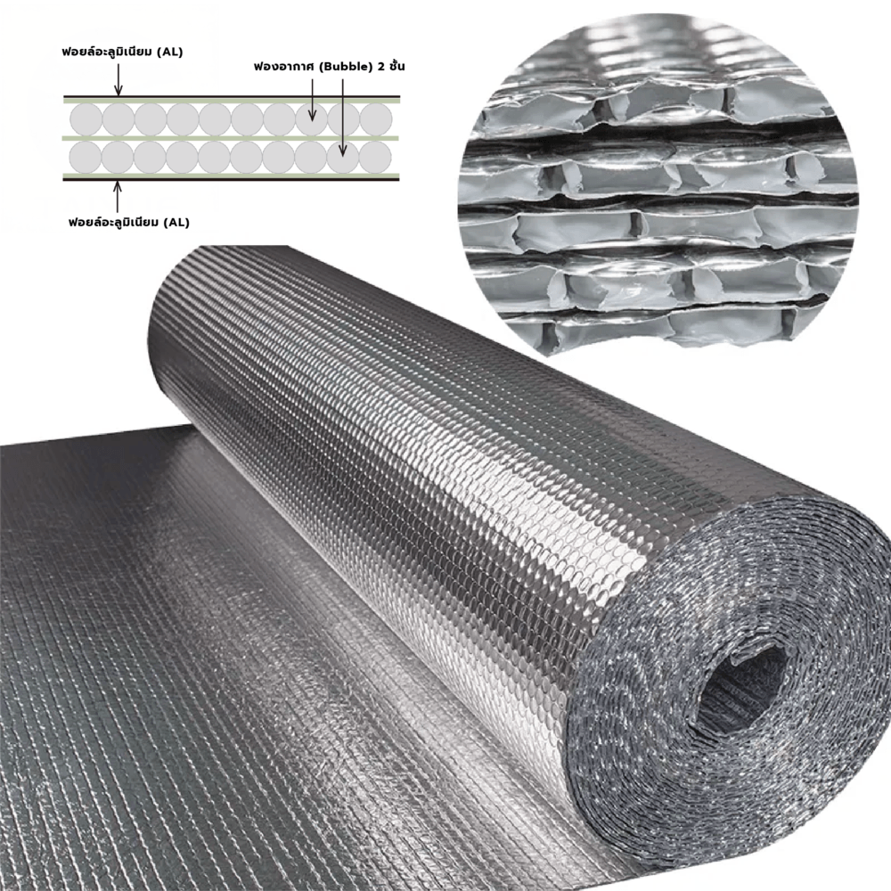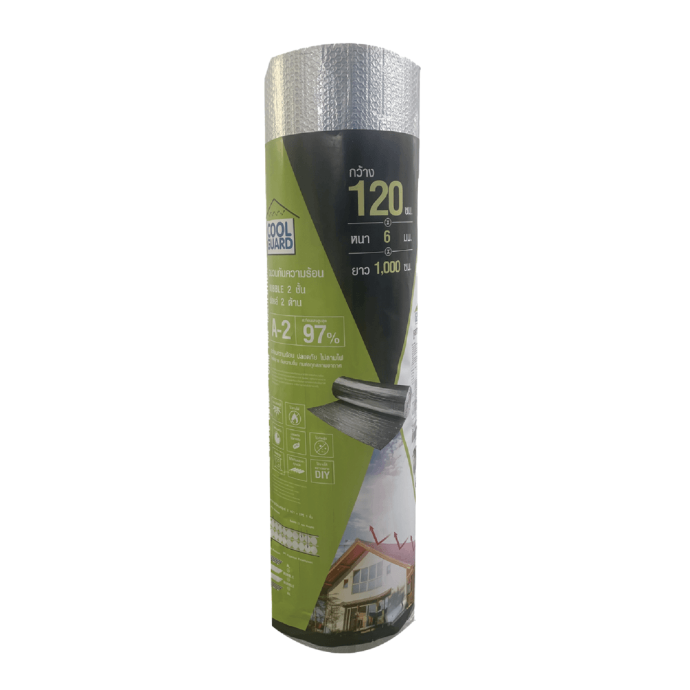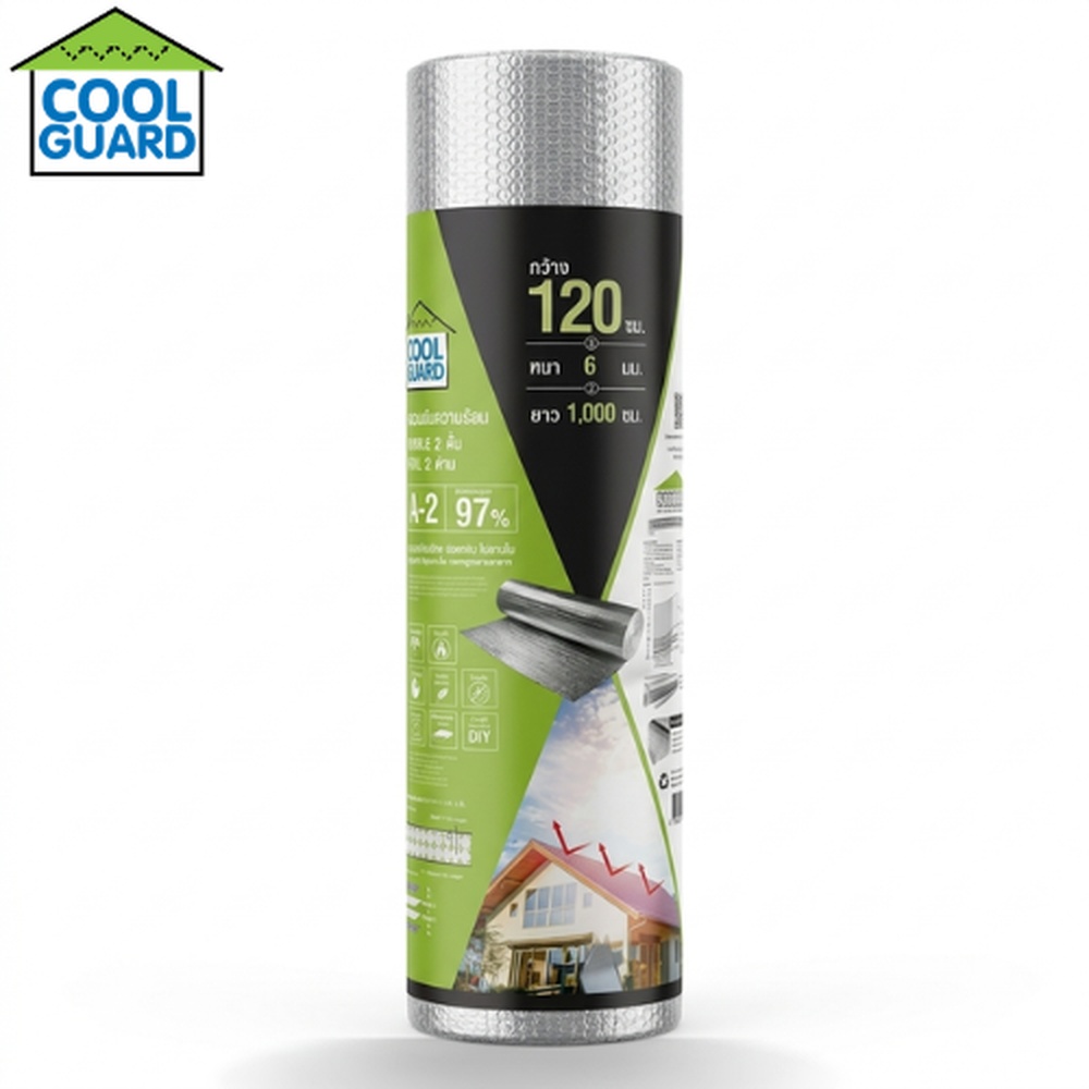 COOL GUARD ฉนวนกันความร้อน Bubble 2 ชั้น ฟอยล์2ด้าน รุ่น A-2 เป็นฉนวนกันความร้อนคุณภาพสูงที่ออกแบบด้วยโครงสร้าง 4 ชั้น ประกอบด้วยฟอยล์อะลูมิเนียมสองด้านและฟองอากาศ 2 ชั้น ซึ่งช่วยสะท้อนและลดการถ่ายเทความร้อนจากภายนอกเข้าสู่ภายในอาคารได้อย่างมีประสิทธิภาพ แม้จะมีความบางเพียง 6 มม. แต่ยังคงป้องกันความร้อนได้อย่างเต็มที่ เหมาะสำหรับการติดตั้งในโครงการก่อสร้าง งานปรับปรุงบ้าน อาคารสำนักงาน และพื้นที่อื่น ๆ ที่ต้องการความเย็นสบายพร้อมประหยัดพลังงาน