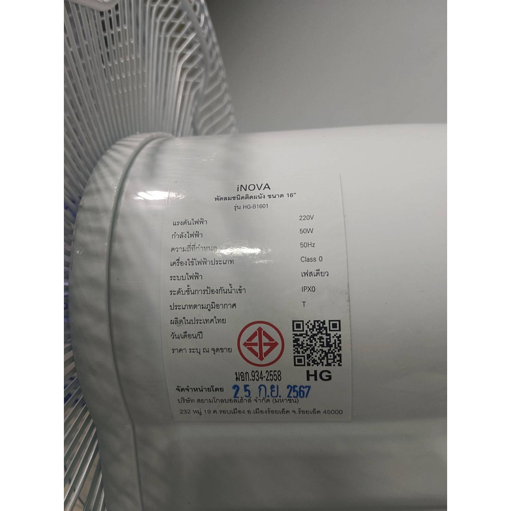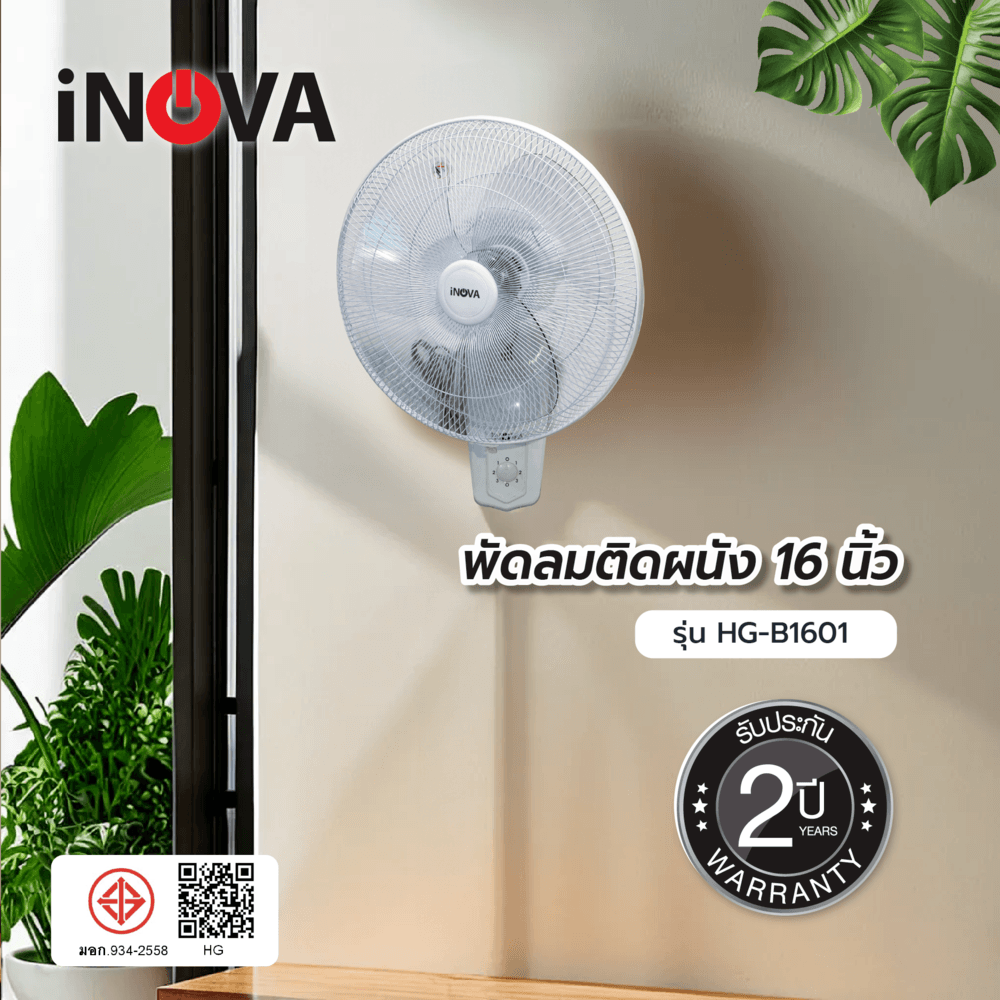 INOVA พัดลมติดผนัง 16 นิ้ว รุ่นHG-B1601 สีขาว