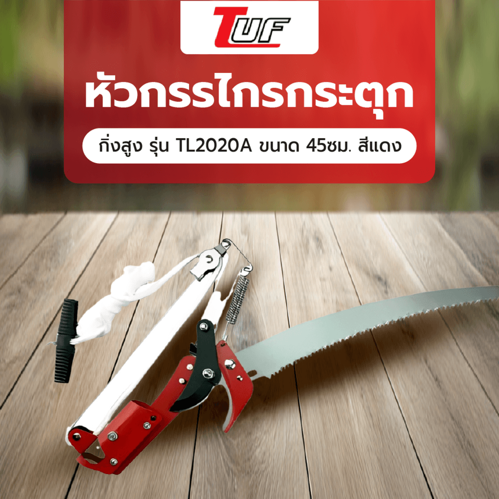 หัวกรรไกรกระตุกกิ่งสูง เป็นอุปกรณ์สำหรับตัดแต่งกิ่งไม้ที่อยู่สูงโดยไม่ต้องใช้บันได ใช้งานร่วมกับด้ามต่อที่สามารถยืดความยาวได้