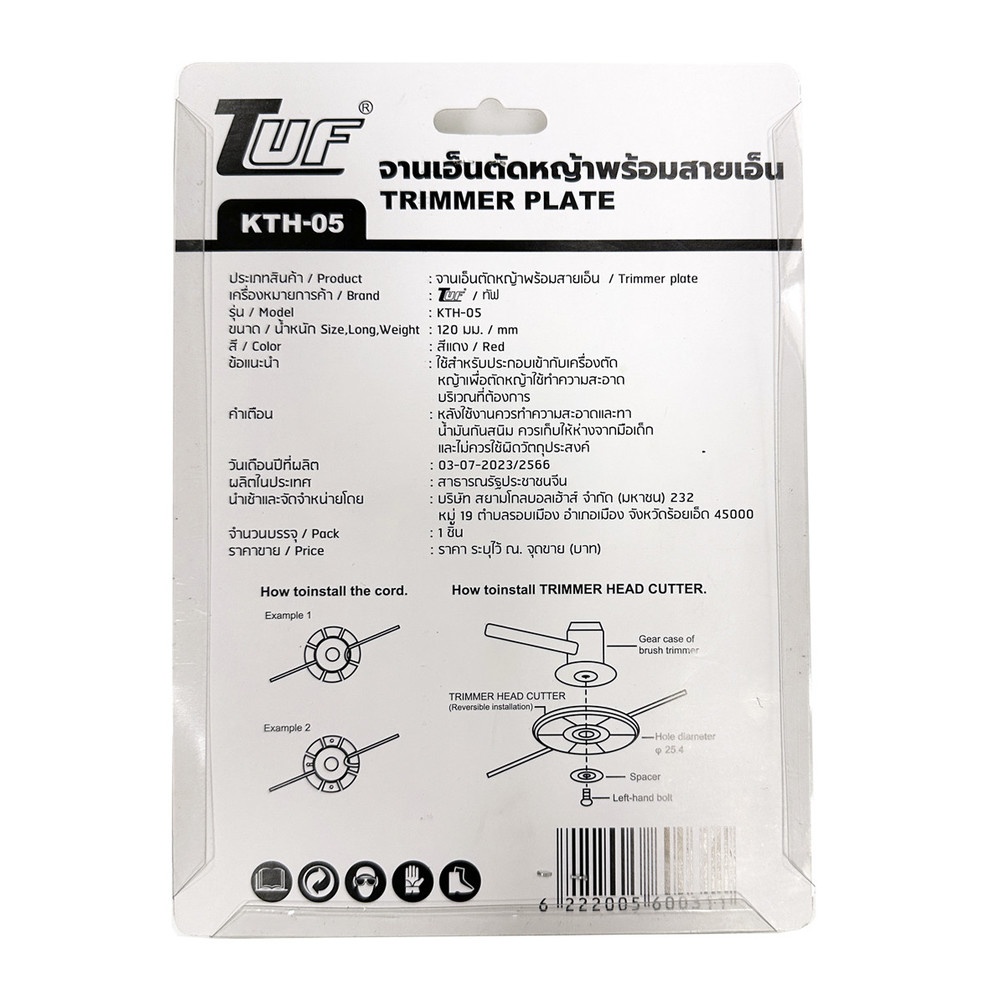 TUF จานเอ็นตัดหญ้า รุ่น KTH-05 ขนาด 12 ซม. สีแดง เป็นอุปกรณ์เสริมสำหรับเครื่องตัดหญ้า ช่วยให้การตัดหญ้าเป็นไปอย่างสะดวกและง่ายดายมากยิ่งขึ้น จานทำจากวัสดุพลาสติกคุณภาพดี แข็งแรง ทนทานต่อการใช้งาน ออกแบบมาให้ตัดหญ้าได้เรียบเนียน ไม่ทำลายสนามหญ้า และให้เสียงเบาขณะทำงาน เหมาะสำหรับใช้ในพื้นที่ขนาดเล็กถึงกลาง