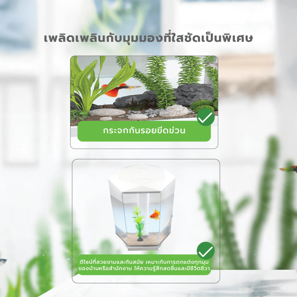 ระบบกรองน้ำประสิทธิภาพสูง: ระบบกรองน้ำช่วยรักษาคุณภาพน้ำให้สะอาดและปลอดภัยสำหรับปลา กรองสิ่งสกปรกและสารพิษที่อาจทำให้ปลาไม่สบาย