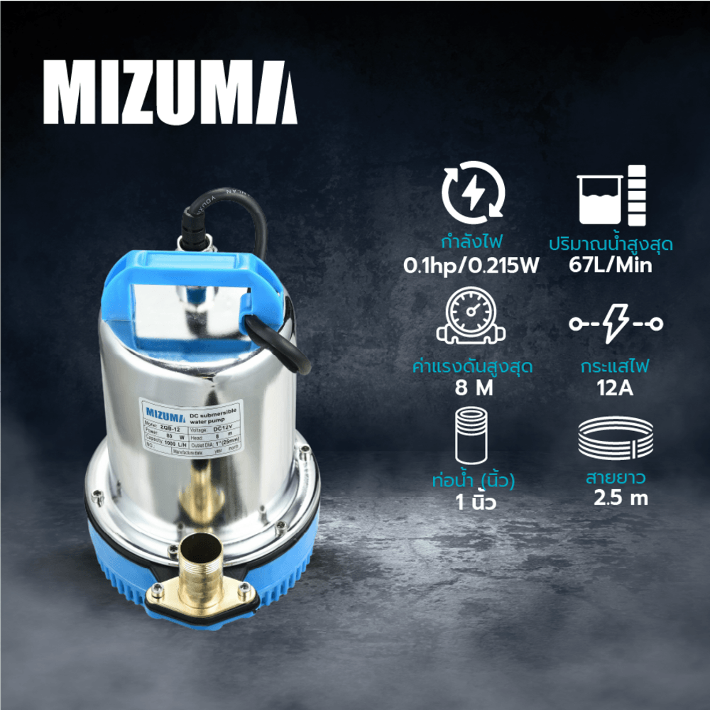 MIZUMA ปั๊มจุ่มโซล่าเซลล์ DC 80W รุ่น ZQB-12