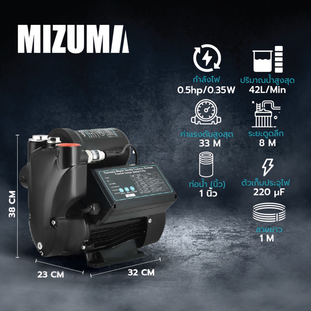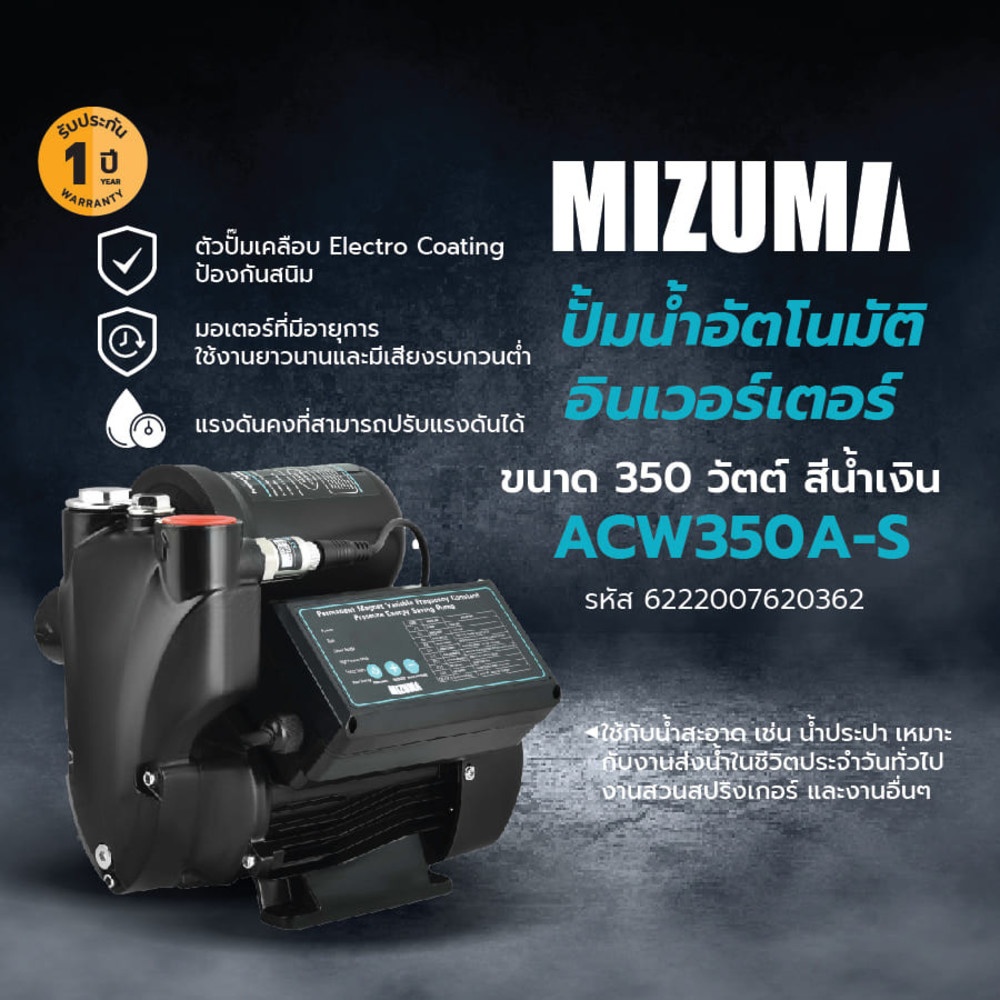คุณสมบัติเด่น: MIZUMA ปั้มน้ำอัตโนมัติอินเวอร์เตอร์ 350W รุ่น ACW350A-S สีดำ