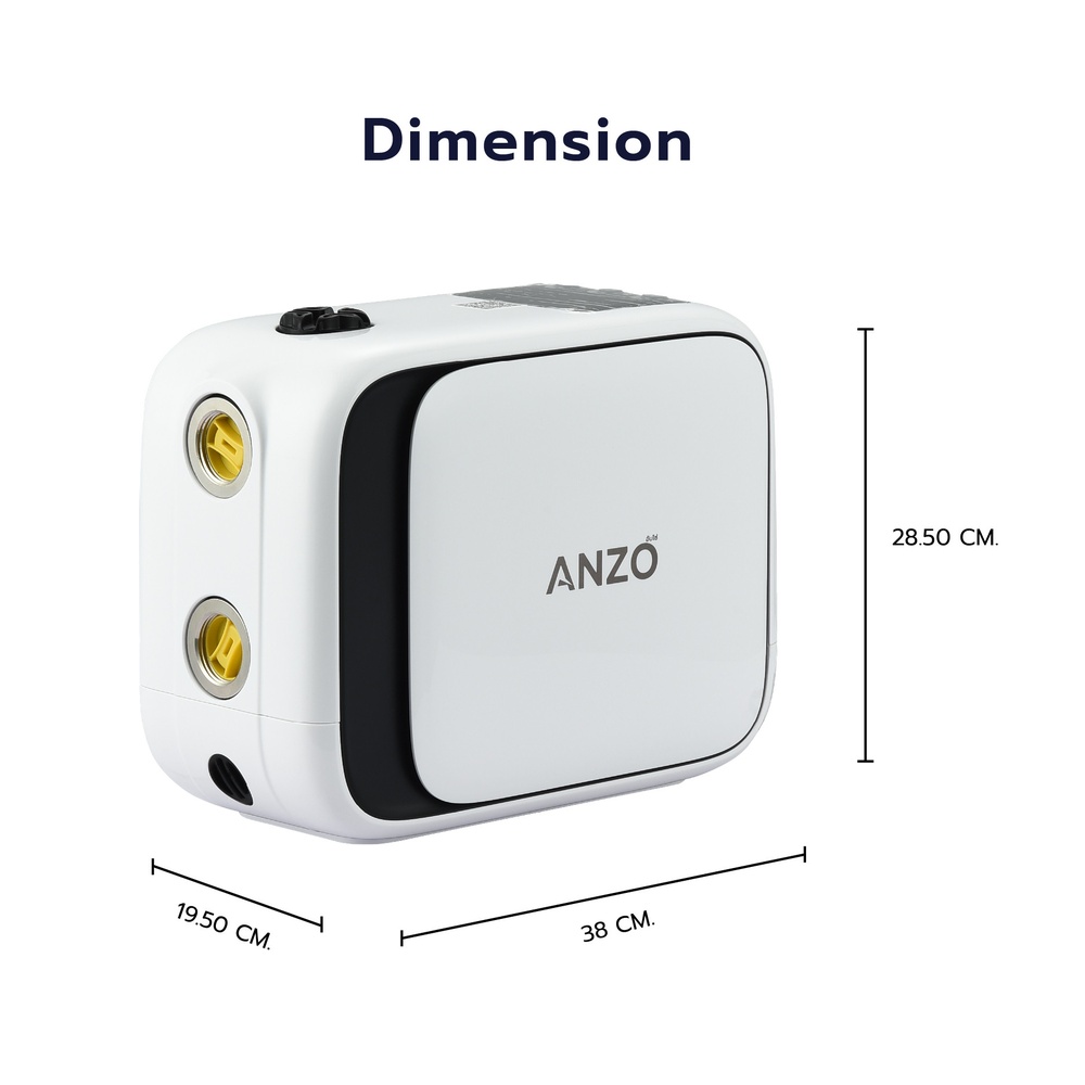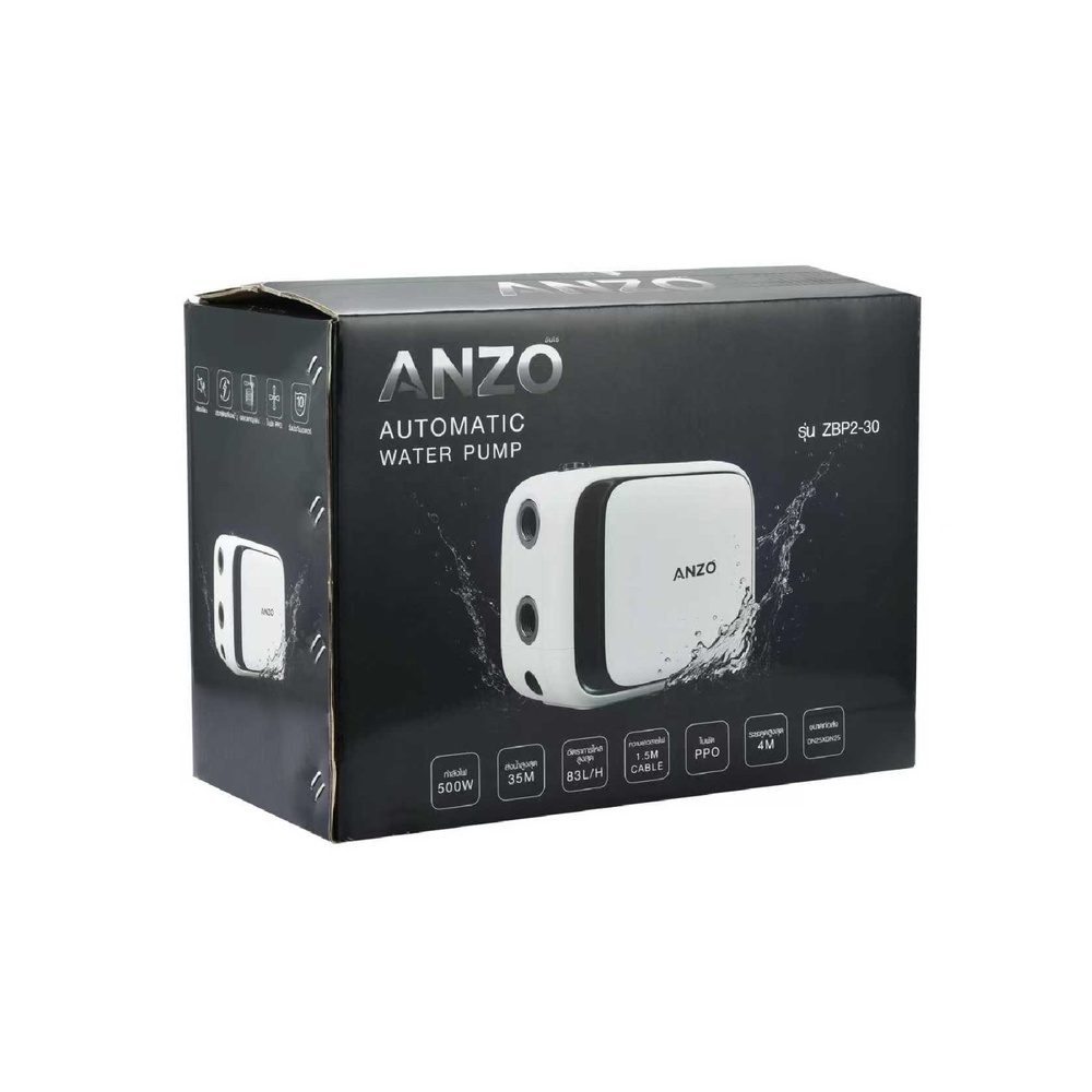 ปั๊มน้ำอัตโนมัติ ANZO รุ่น ZBP2-30 กำลังไฟ 500 วัตต์ มาพร้อมเทคโนโลยีอินเวอร์เตอร์อัจฉริยะ จ่ายน้ำต่อเนื่อง ไม่มีสะดุด อัตราการไหลสูงสุด 83 ลิตร/ชั่วโมง และส่งน้ำได้ไกลถึง 35 เมตร ตัวเครื่องทำจากพลาสติกไทเทเนียม (Plastic Titanium) แข็งแรง ไม่เป็นสนิม และเป็นมิตรต่อสิ่งแวดล้อม ใช้มอเตอร์ทองแดงแท้ มีระบบป้องกันหลายชั้น เช่น ป้องกันน้ำแห้ง ไฟตก ไฟเกิน น้ำแข็งเกาะ และไฟรั่ว พร้อมสายไฟ EU Plug ยาว 1.5 เมตร และหน้าจอ LED ใช้งานง่าย