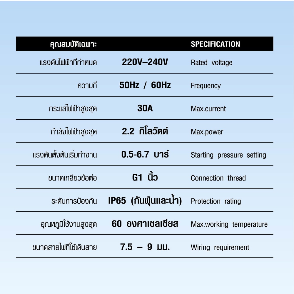 รองรับกำลังไฟฟ้าสูงสุดถึง 2.2 กิโลวัตต์ กระแสไฟสูงสุด 30A