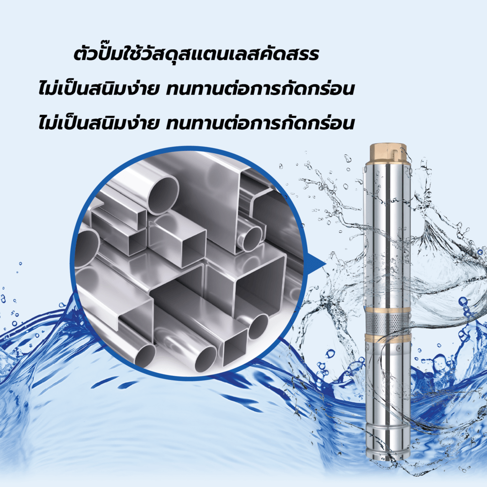 เหมาะสำหรับ สูบน้ำจากบ่อบาดาลลึก เพื่อใช้ในไร่นา พืชสวน หรือพื้นที่เกษตร