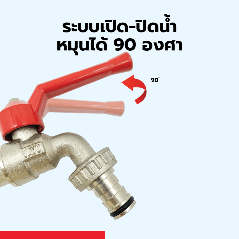 - ด้ามจับทำจาก อลูมิเนียมเคลือบสีแดง จับง่าย กระชับมือ เปิด-ปิดสะดวก ไม่ต้องออกแรงมาก