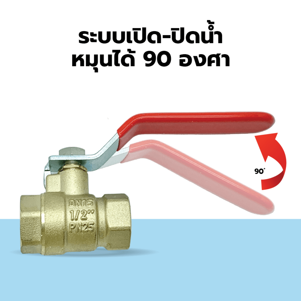 - กลไกภายในเป็นลูกบอลหมุน ช่วยให้การเปิด-ปิดน้ำหรือของเหลวทำได้สะดวกและรวดเร็ว