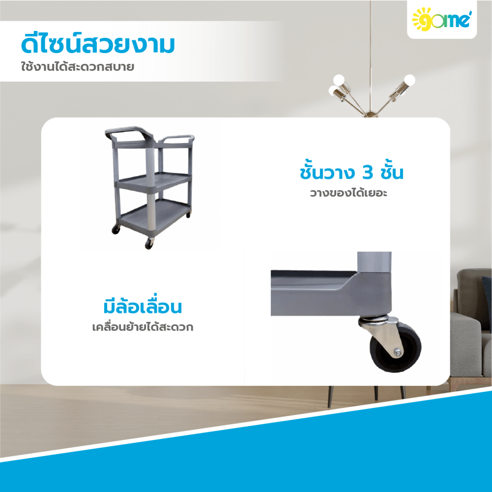 GOME รถเข็นอเนกประสงค์พลาสติก ขนาด 84.5x43x95 ซม. รุ่น AF08162 สีเทา