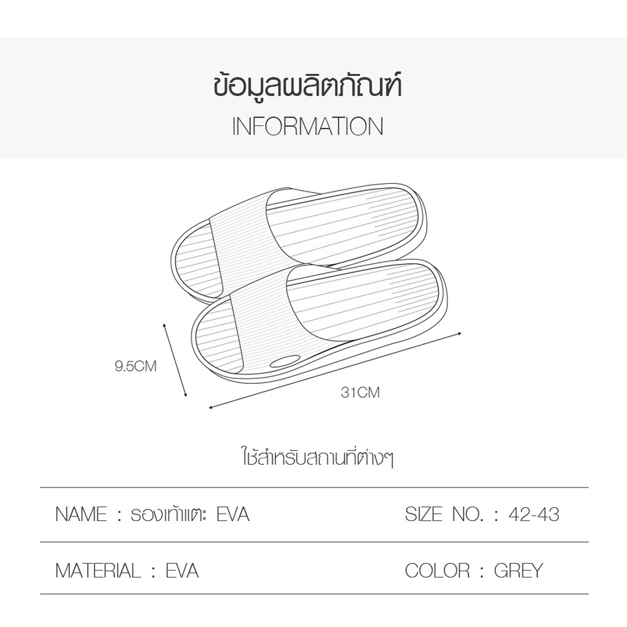 รุ่น | PRIMO รองเท้าแตะ EVA QD006-GY423 สีเทา เบอร์ 42-43 |
