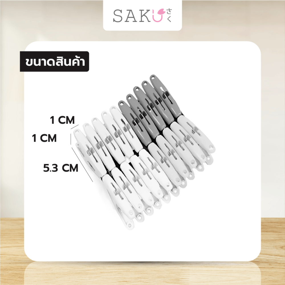 การใช้งานที่หนีบผ้าของ SAKU ง่ายและสะดวก เพียงแค่หนีบผ้ากับที่หนีบแล้วสามารถเก็บไว้ในพื้นที่ที่ต้องการ เช่น ราวตากผ้า หรือตู้เสื้อผ้า